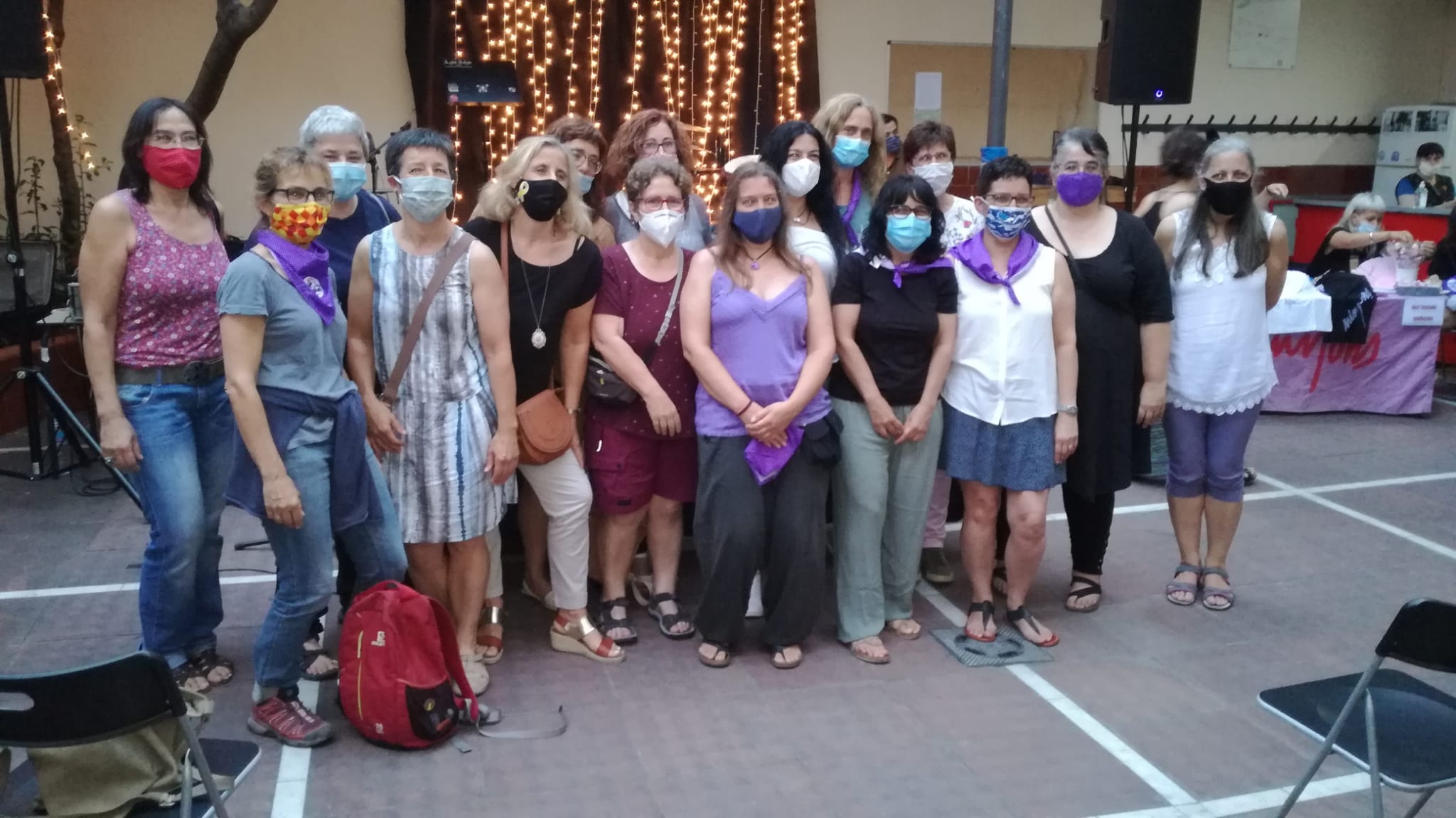 L’acte va començar puntualment a les 20h i va ser conduït per la Maria Dern, membre de la Comissió i una de les fundadores de les Minyones l’any 1980. L’acompanyaven a la taula tres dones més de diferents: la Carla Forn, l’Aida Lleyda i la Isolda Sucarrats van ser les encarregades de presentar la roda de premsa i els actes que hi ha previstos celebrar, sempre que la situació ho permeti. En paral·lel, a l’altra banda del pati, el públic va exhaurir les places disponibles una bona estona abans de començar l’acte. Els actes previstos són: una taula rodona, una trobada per a dones Minyones de totes les generacions, xerrades, un acte públic festiu i un desig: poder fer un castell íntegrament femení.