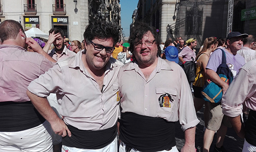 E: Llegir i la història, és el que vaig estudiar tot i que mai m’he dedicat, però m’apassiona cada dia més, no s’entén el present sense intentar comprendre el passat. És molt saludable, per exemple, estudiar el naixement i l’evolució dels nacionalismes català i espanyol, desmuntar mites i analitzar el present a partir d’aquests coneixements. Però això no sé si es pot considerar una afició, com la dels castells no en tinc cap altre, ni temps per tenir-la. Per exemple, aquest serà el segon any que canvio les vacances del mes de juliol al de novembre per poder gaudir, al menys, del darrer tram de la temporada, quan el patí és més ple de cara a Diada i l’ambient de la colla és fantàstic